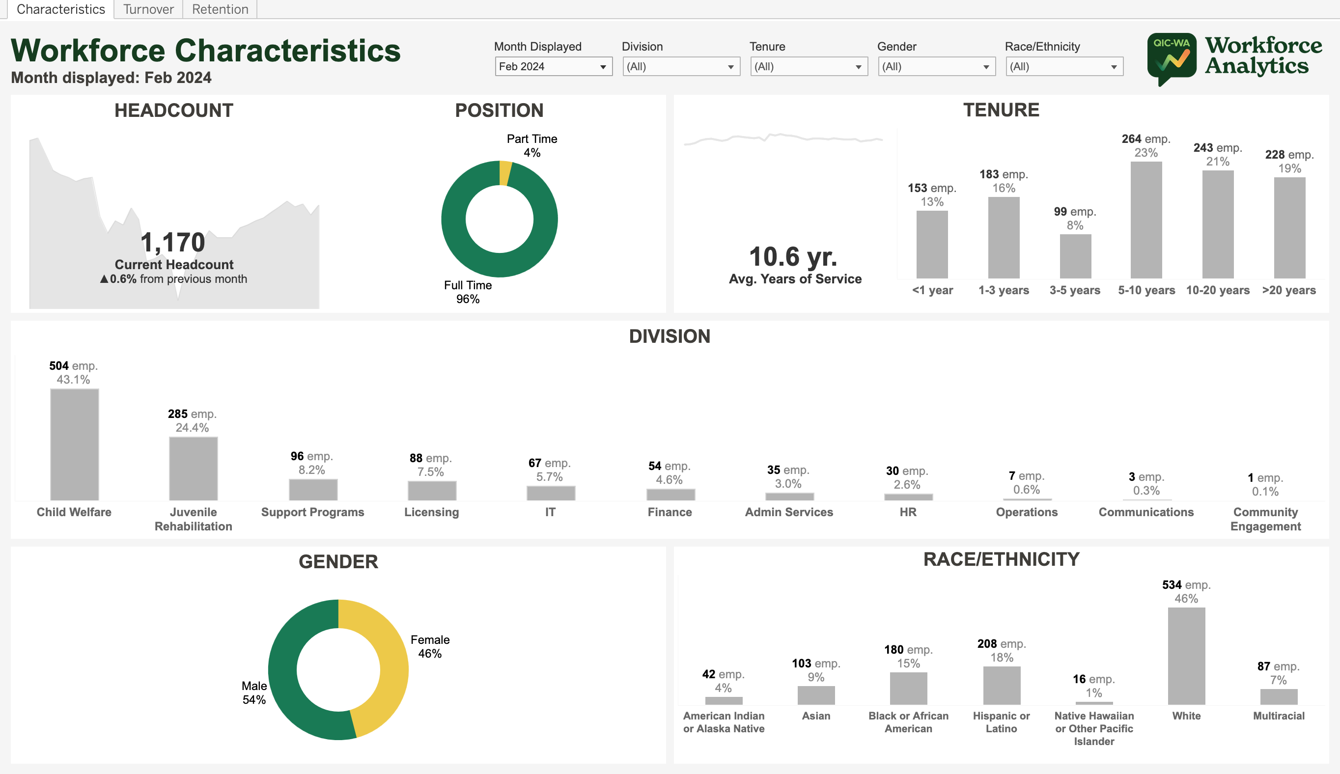These counts can then be turned into percentages in order to identify what proportion of the workforce falls into a certain category. Agencies can use these counts and percentages to look at the makeup of the workforce and at patterns in employee background information over time to see how the makeup of the workforce is changing.